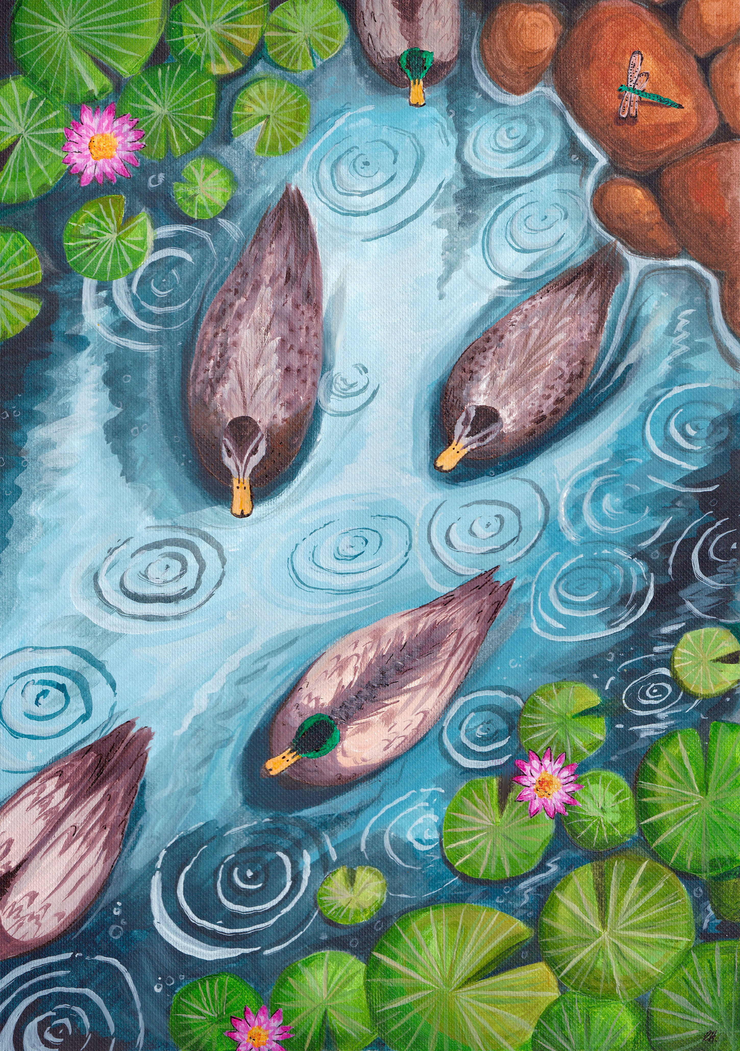 Most of my work is painted in acrylic, a medium I love for its vibrancy and versatility. I mostly paint on evenings and weekends, running this little venture alongside my 9-5. If I am not at my desk or in the studio, I am usually off exploring woodlands, coastlines, and footpaths, which often sparks the ideas and colours that make their way into my paintings.